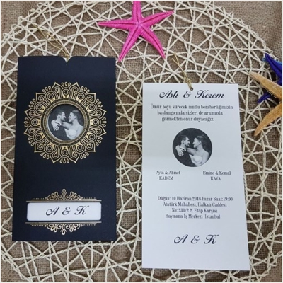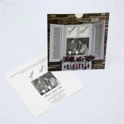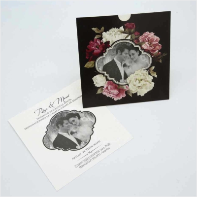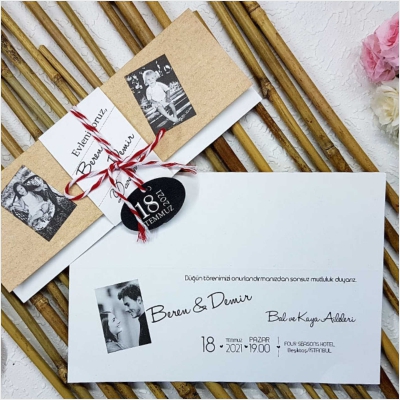 Çoğu kağıt grubuna siyah-beyaz ve renkli olarak basılabilen fotoğraflarınız davetiye metni ile uygun olarak dizayn edilebilmektedir. Uygun olan zarf grubu ile de eşleşebilmektedir.