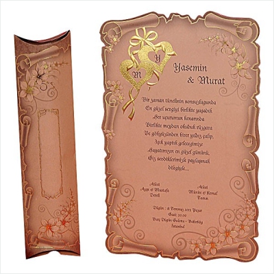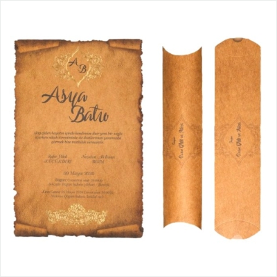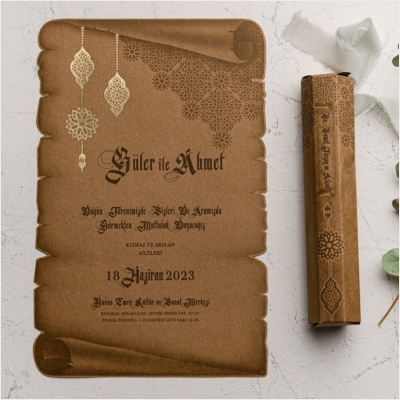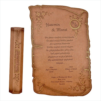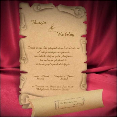 Konsepti gereği genelde iç baskı kağıdı kıvrılarak kullanılan davetiye modeline istenirse ucuna herhangi bir püskül takılarak davetlilere sunulabilir.