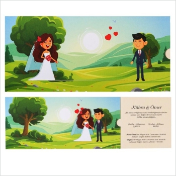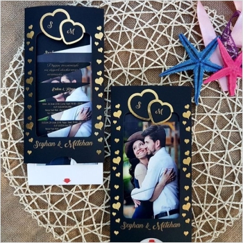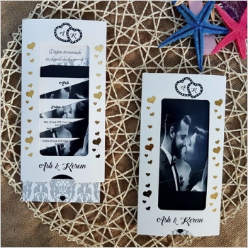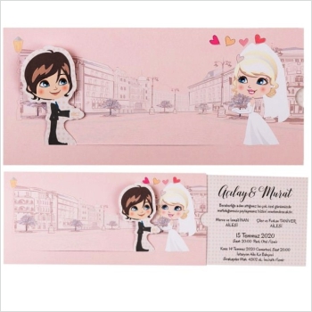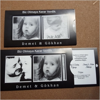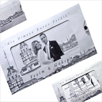 Özel kesim matbaa tekniğinin kullanılarak üretildiği modeller farklı dizaynları ile evlenecek çiftlerin ve misafirlerinin beğendiği davetiyeler arasındaki yerini almıştır.