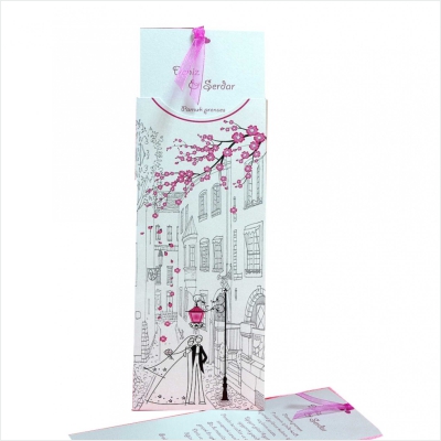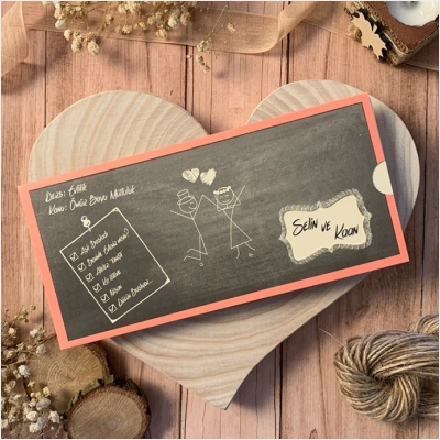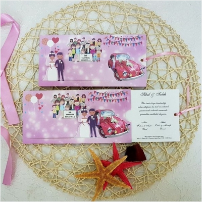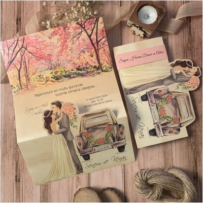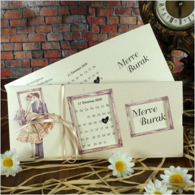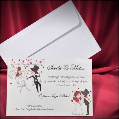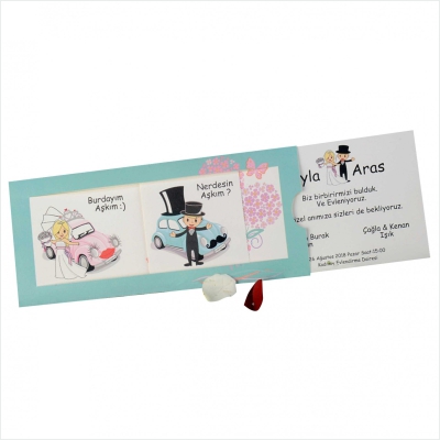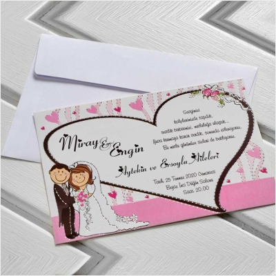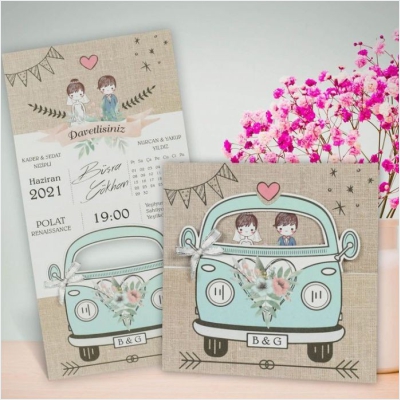 Hareketli olarak da tasarlanabilen davetiyeler genellikle yoğun tasarımlı modellerden oluşur ve gelin-damat karikatürleri de davetiyeye uyarlanabilir.