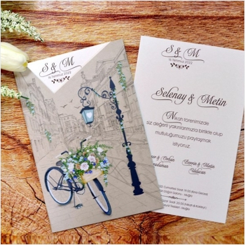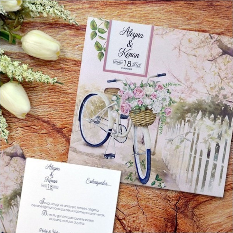 Butik olarak tasarlanan davetiyelere kattığı sempatiklik ve renkli görsellikleri ile bisikletli davetiyeler oldukça beğenilmektedir.