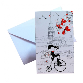 İç baskı kağıtları sade olarak tercih edilebilen modellerin zarflarına bisiklet figürleri uygulayabilmek mümkün olmaktadır.