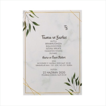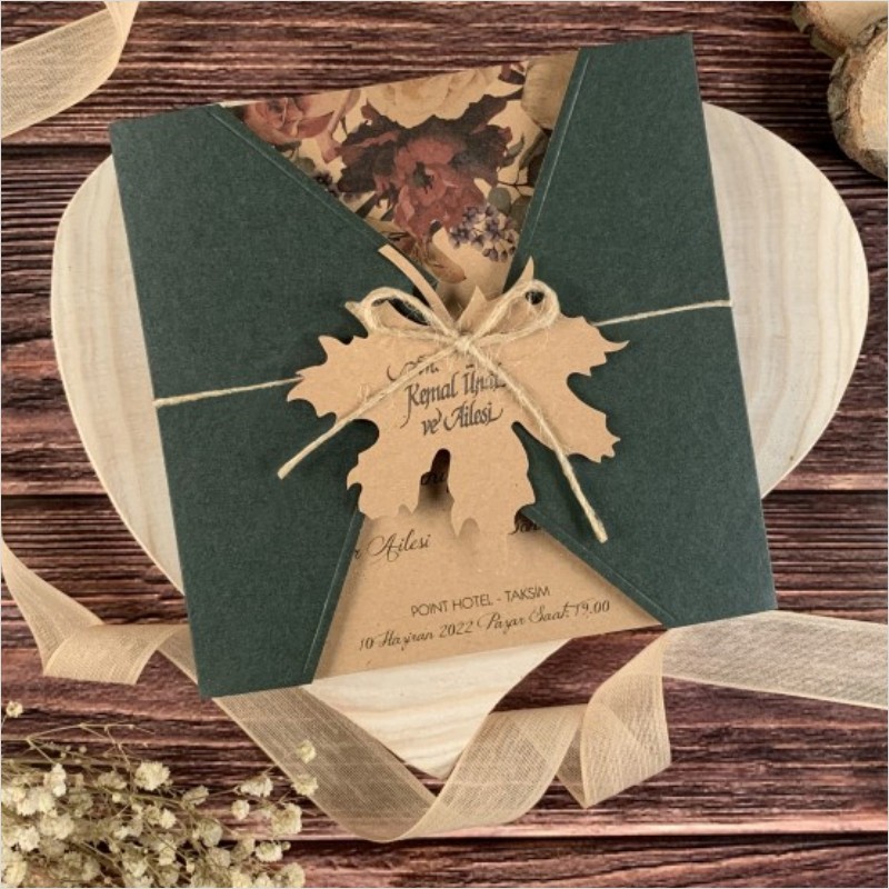 Web sayfamızda bulunan yaprak desenli davetiyeler de şöyle;